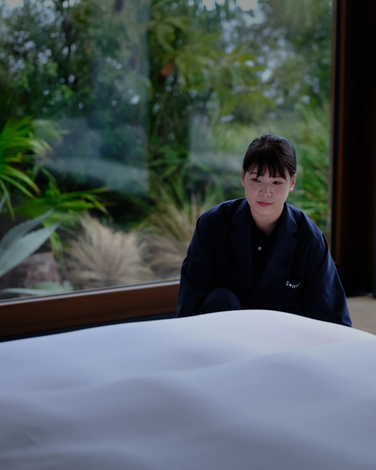現在はNOT A HOTEL AOSHIMAで、清掃からゲスト対応まで幅広く担当。バレエで培った「細部まで手を抜かない姿勢」は、今の仕事にも通じています。ゲストの表情やチャットの言葉から「何を求めているか」を感じ取り、マニュアルを超えた心地よい時間をつくる——そんな自然体のプロ意識が、NOT A HOTELの体験を静かに支えています。