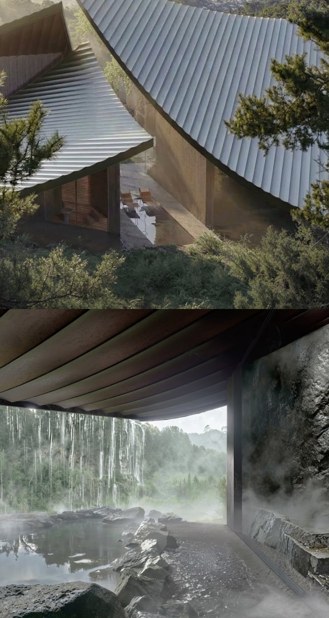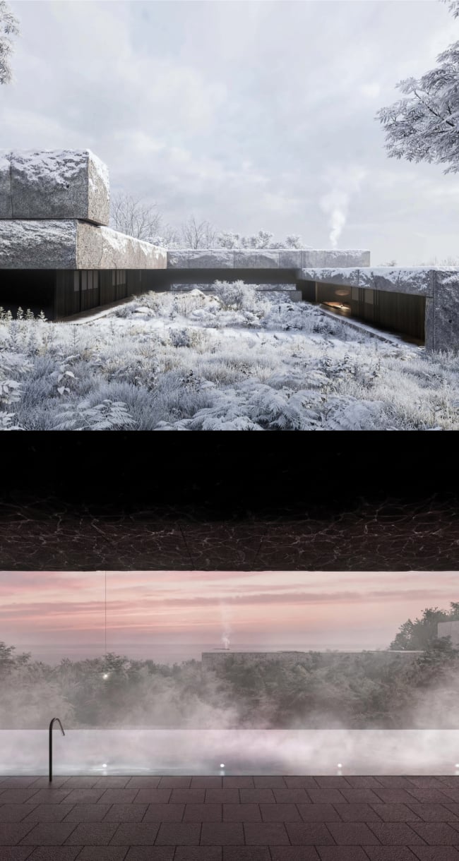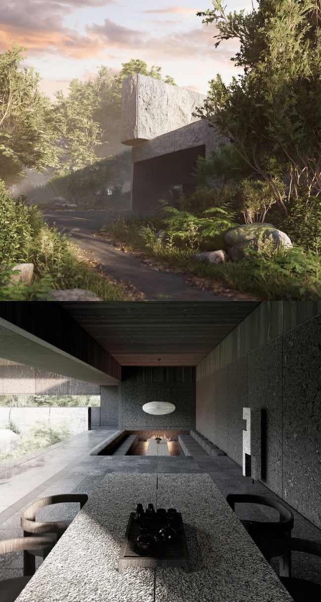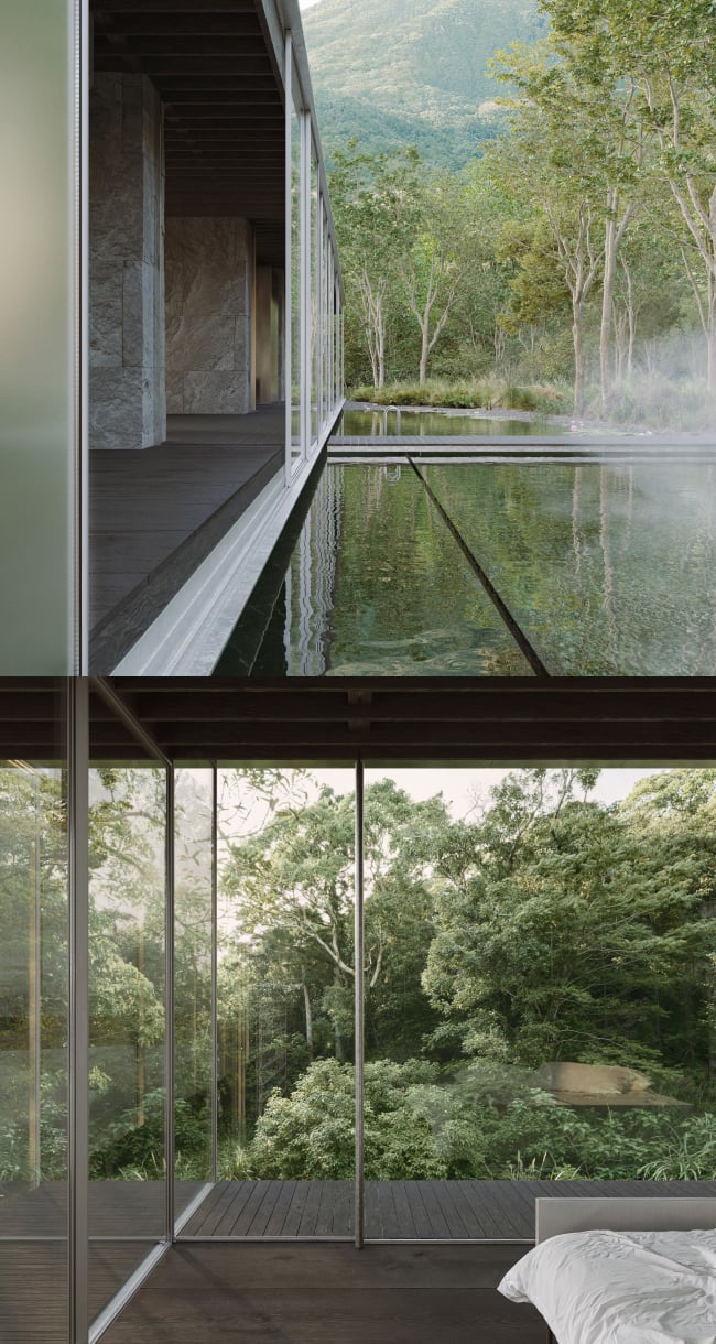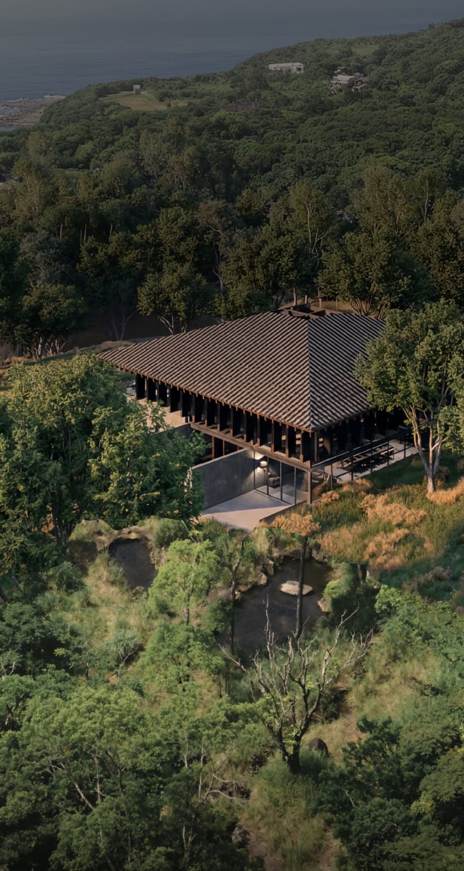 In particular, we were deeply impressed by your interpretation of Yakushima's abundant rainfall — transforming it into a spatial experience through a waterfall cascading from the roof onto the rocks. It is a remarkable gesture that demonstrates a profound reading of the site's environmental context.