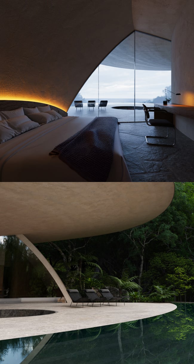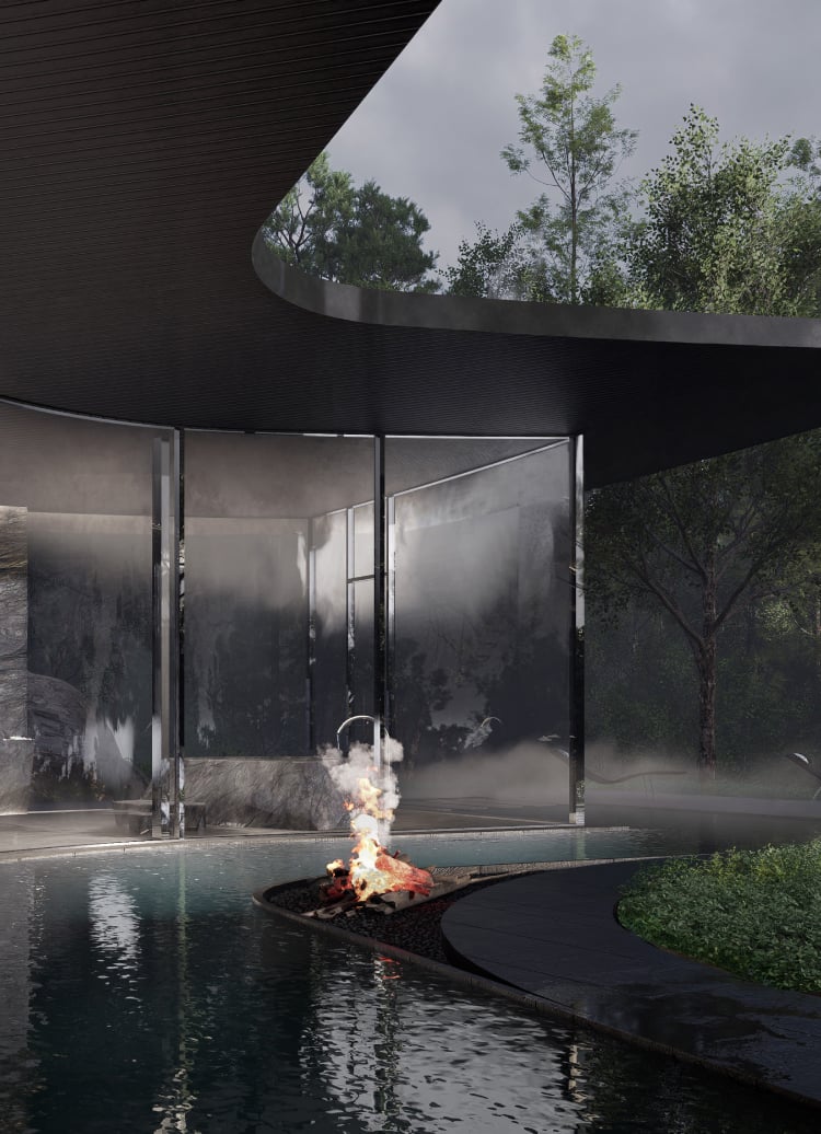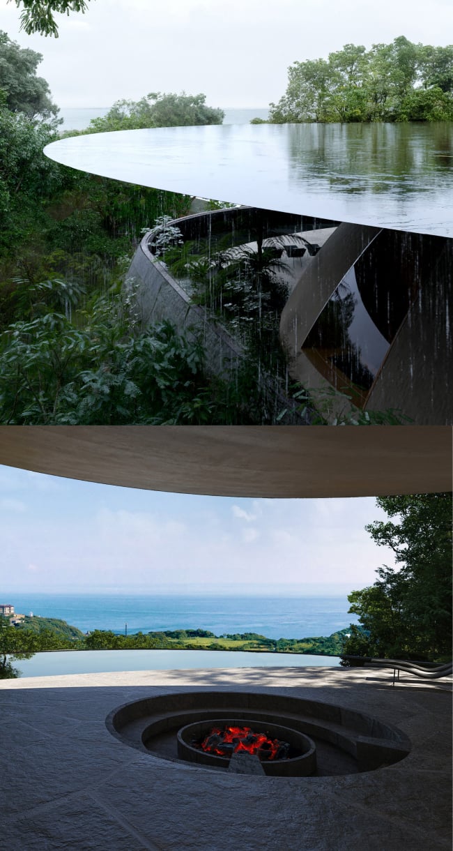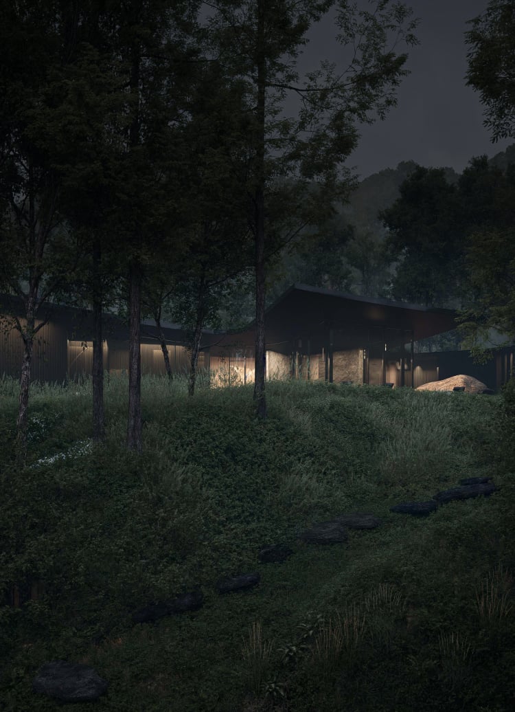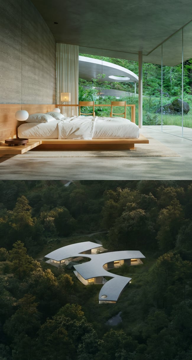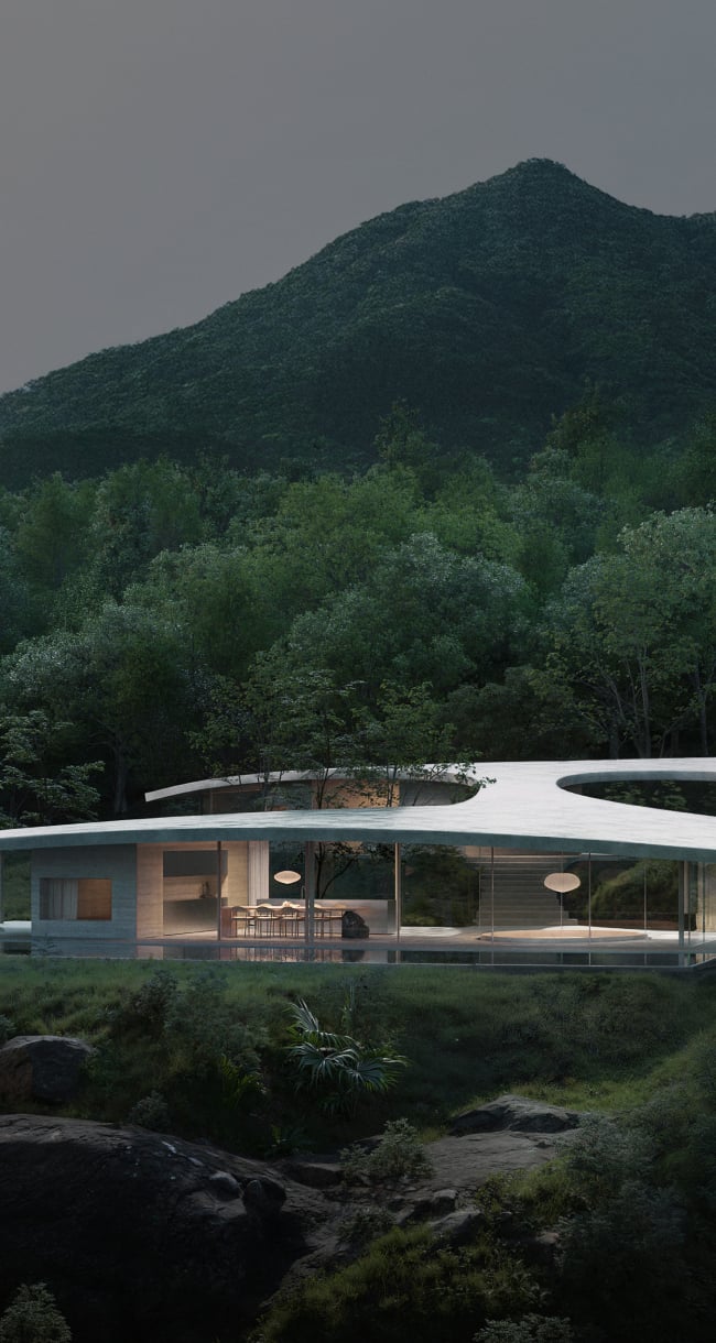 In particular, we were deeply impressed by your interpretation of Yakushima's abundant rainfall — transforming it into a spatial experience through a waterfall cascading from the roof onto the rocks. It is a remarkable gesture that demonstrates a profound reading of the site's environmental context.