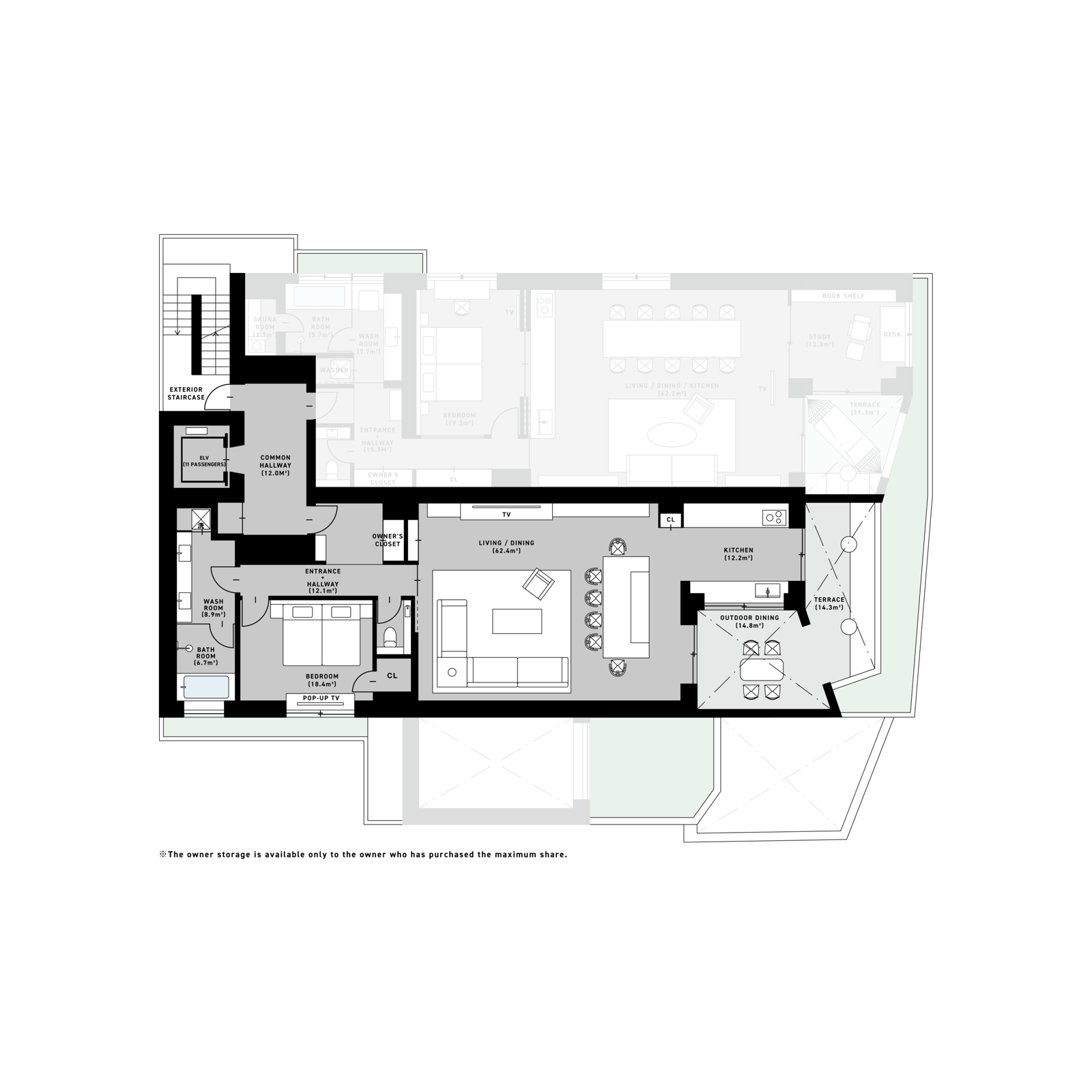 Interior size: 125.70㎡ (1,353.02 sq ft)Total area: 154.79㎡ (1,666.14 sq ft)
