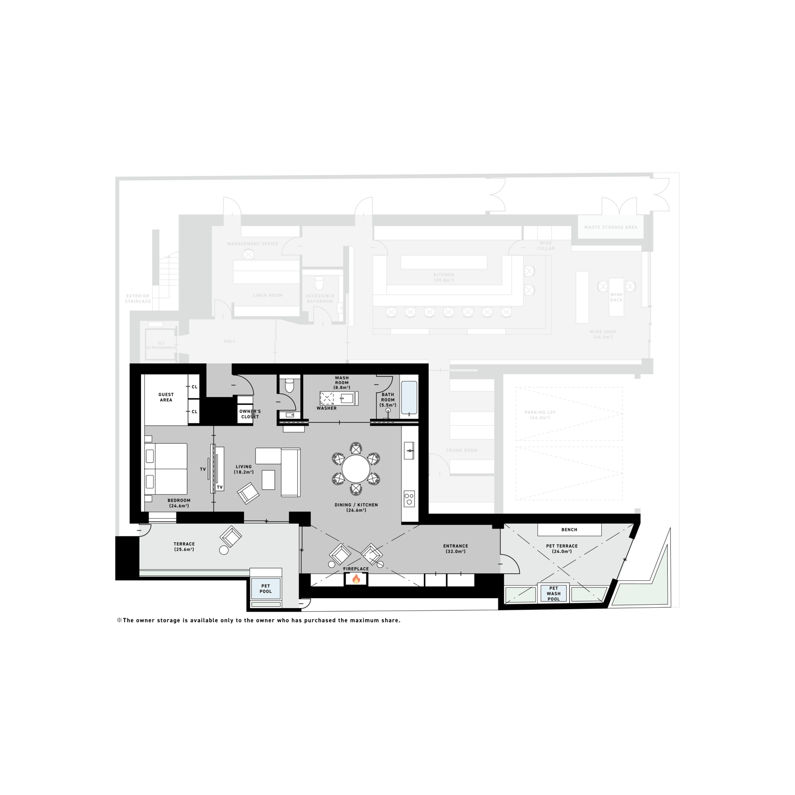 Interior size: 123.13㎡ (1,325.36 sq ft)Total area: 172.66㎡ (1,858.49 sq ft)
