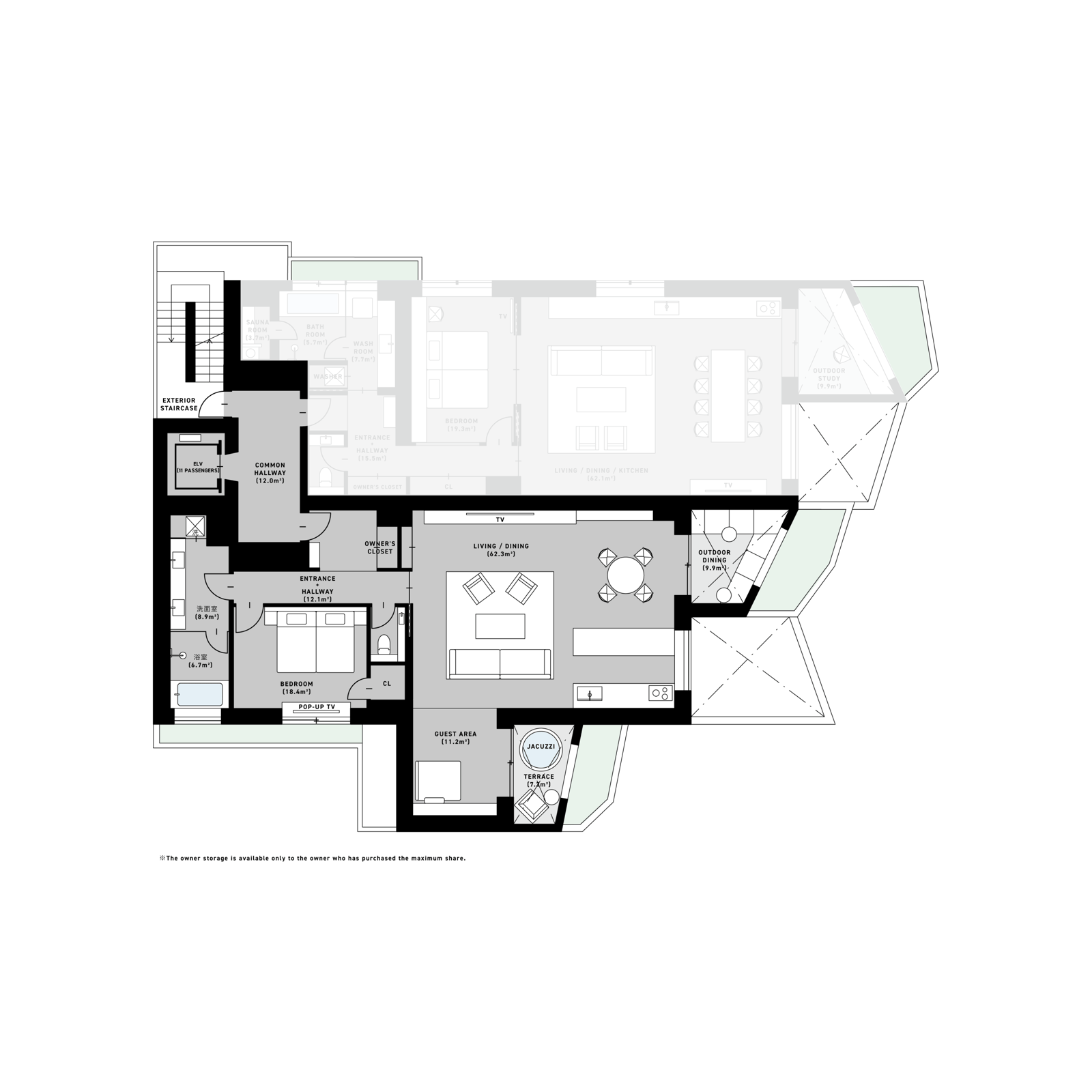 Interior size: 125.21㎡ (1,347.75 sq ft)Total area: 142.39㎡ (1,532.67 sq ft)