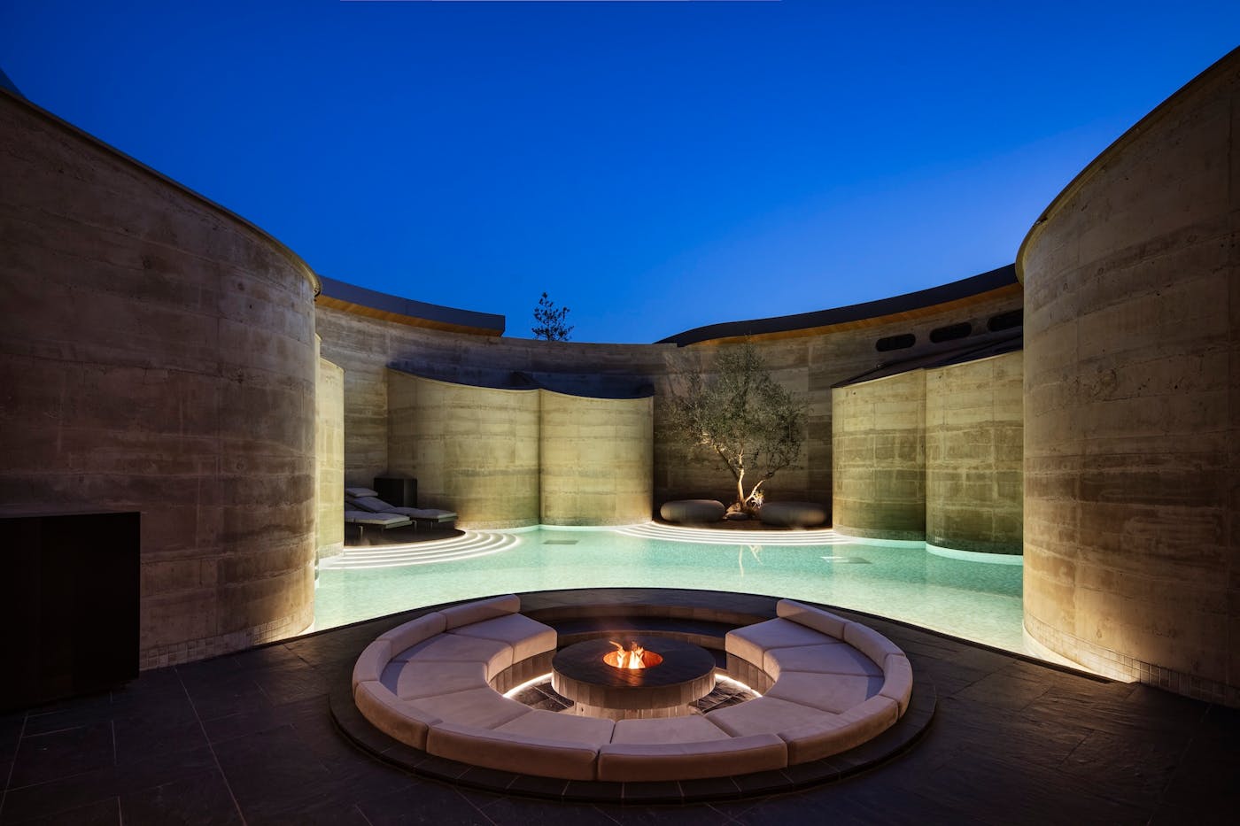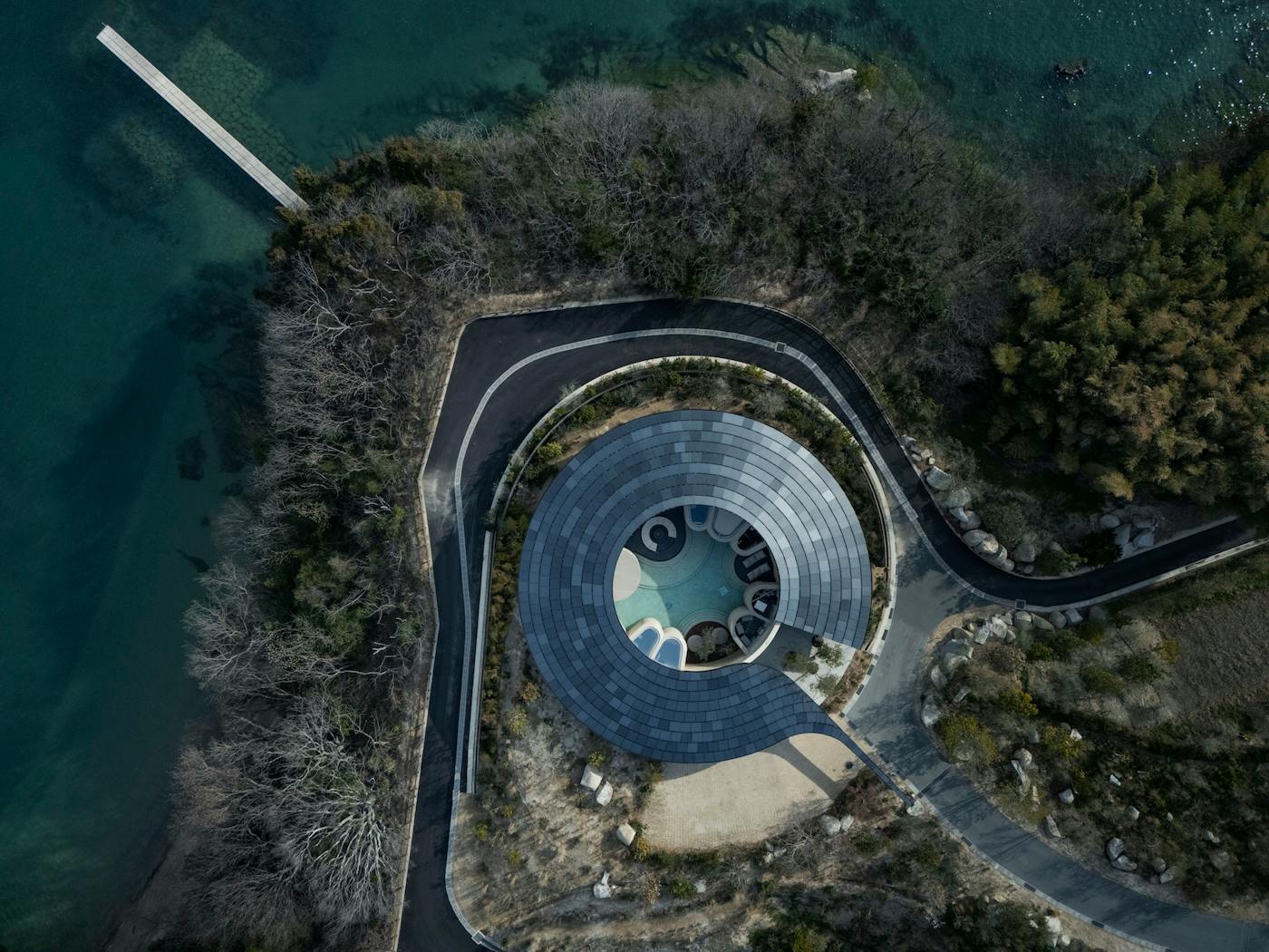 Located on a hill in the northeastern part of the peninsula, “270” overlooks the Seto Inland Sea. The building's exterior is surrounded by ocean views, with a pool designed to resemble the sea and islands at its center. Every space feels enveloped in a gentle flow of water. The living and dining areas are surrounded by water. Fire spaces and outdoor relaxation areas are scattered around the pool like floating islands, and a mystical sauna is also provided inside a pod. The total area is 745.97 m2, with 4 bedrooms and a maximum occupancy of 10 people.