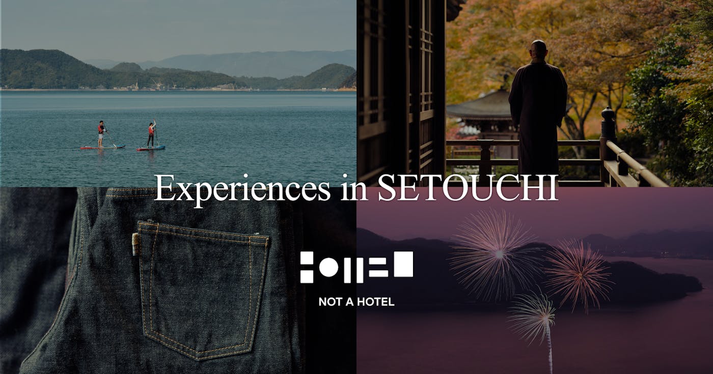 NOT A HOTEL also offers a full package of Experiences in SETOUCHI that connect owners/guests with the nature, culture, and craftspeople in the Setouchi region. These include private cruises to enjoy the beauty of the many islands from sunset to starry skies, as well as marine activities such as sea kayaking, SUP, and boat fishing to enjoy the island scenery. In addition, NOT A HOTEL provides many off-island day trips, including a bespoke denim experience at a denim workshop loved by long-established fashion houses, wellness programs at Miyajima's Daishoin Temple, and even art tours around Naoshima, Teshima, and Inujima.