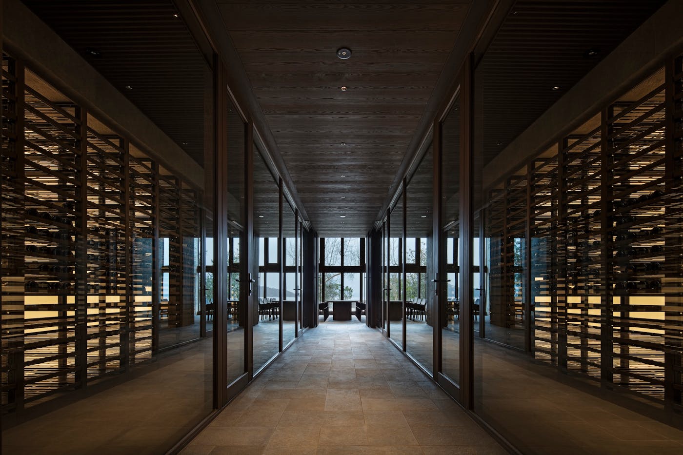 The architecture for SETOUCHI builds on the region’s traditions, blending elements of traditional Japanese single-story houses with modern structures and designs. The glass façade connecting the interior and exterior is a modern interpretation of shoji screens, and the floor design incorporates the layout concept of traditional tatami mats. Furthermore the curved earthen walls utilize the rammed earth technique using local soil, imbuing the space with a texture that evokes the local climate and culture.