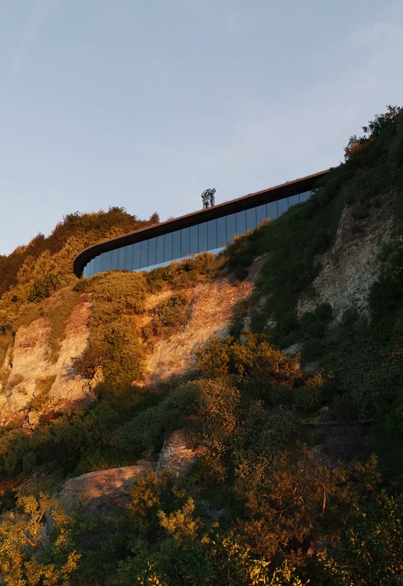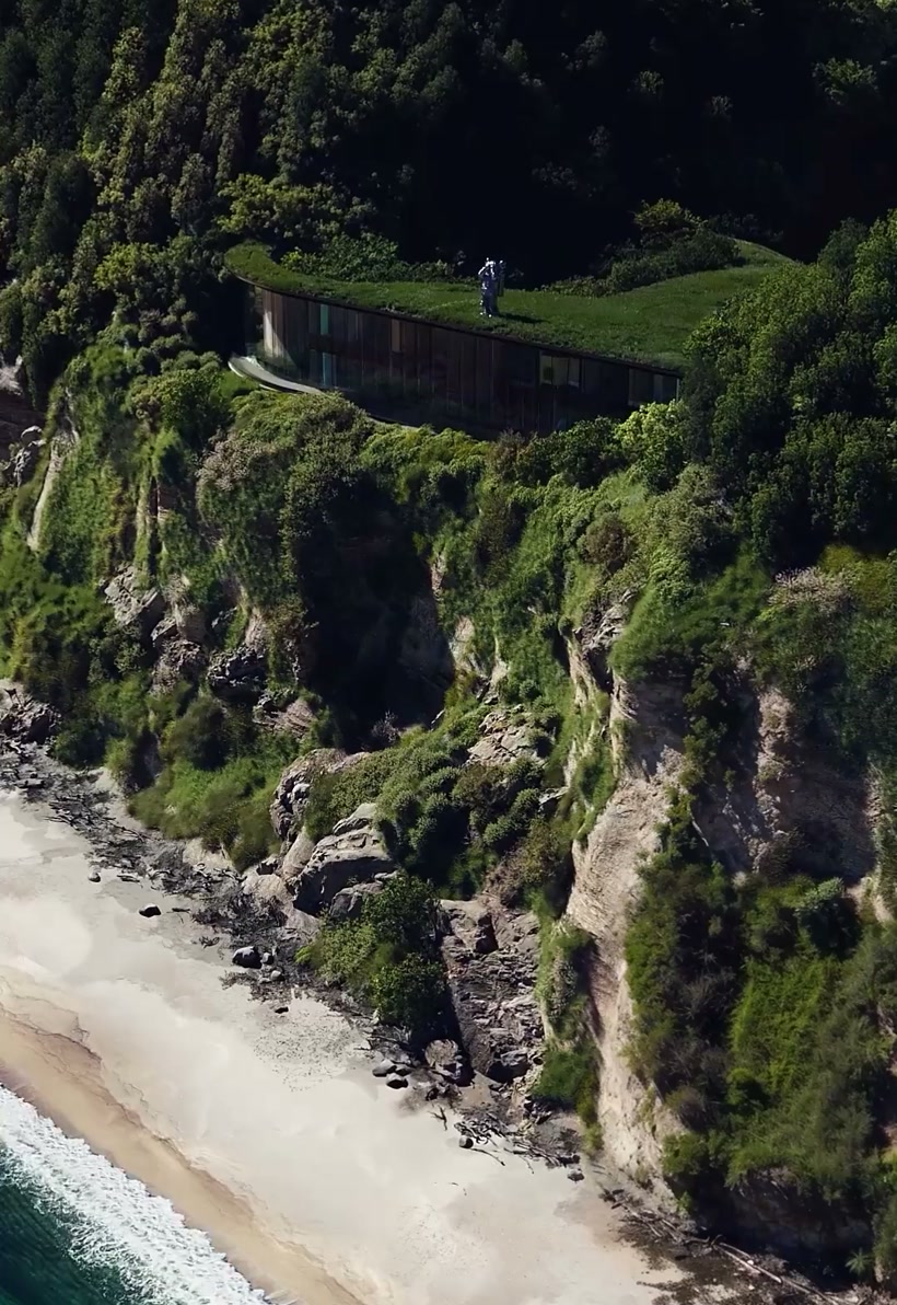 太平洋を見下ろす崖の上、敷地と一体化したデザインが目を引く谷地。建物が地形に埋まるような独自の構造を持ち、リビングの床から天井まで続く大窓からは、刻々と表情を変える富士山を一望。開放的な建築と豊かな自然が溶け合い、唯一無二の景観を描き出す。 羽田空港から約45分、東京駅から車で1時間。都心近郊ながら、喧騒を離れた千葉県富津市の海岸沿いに位置する。