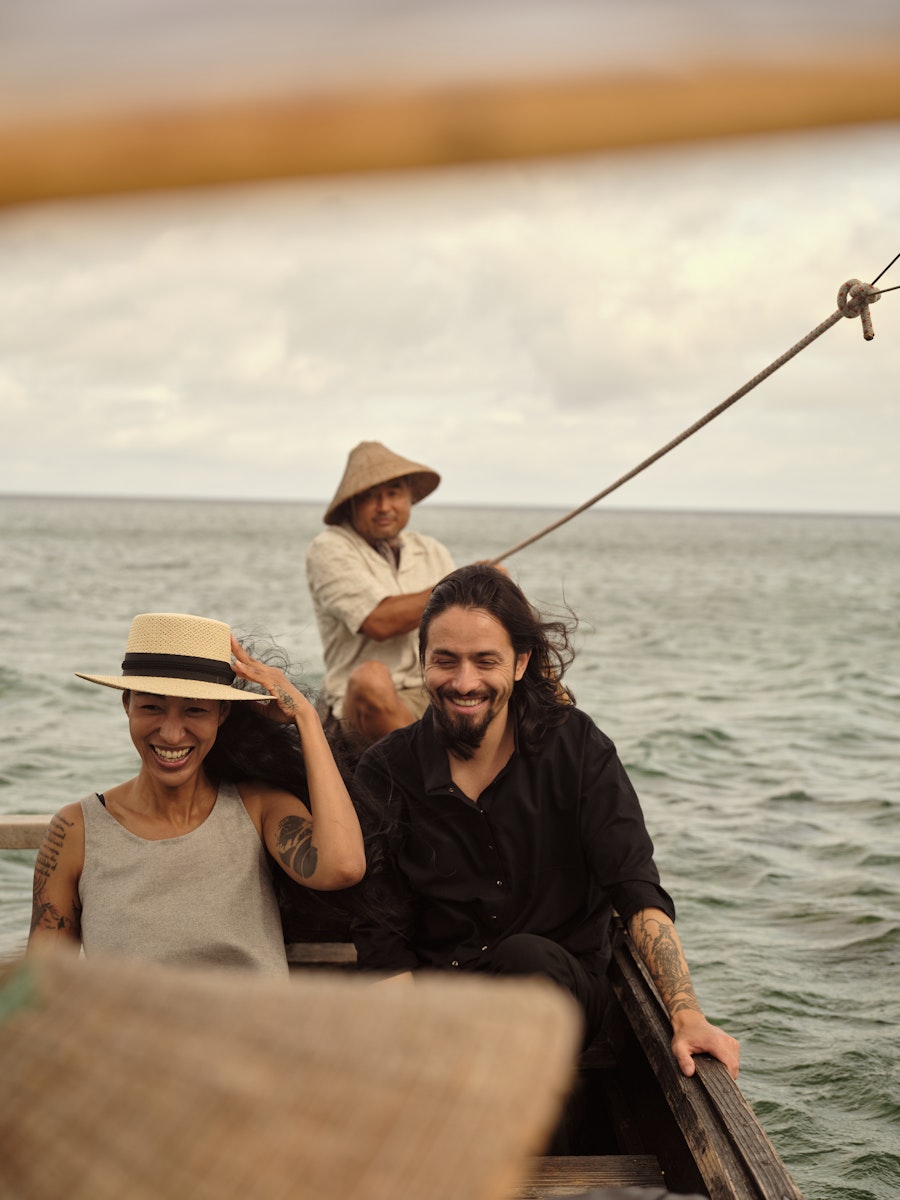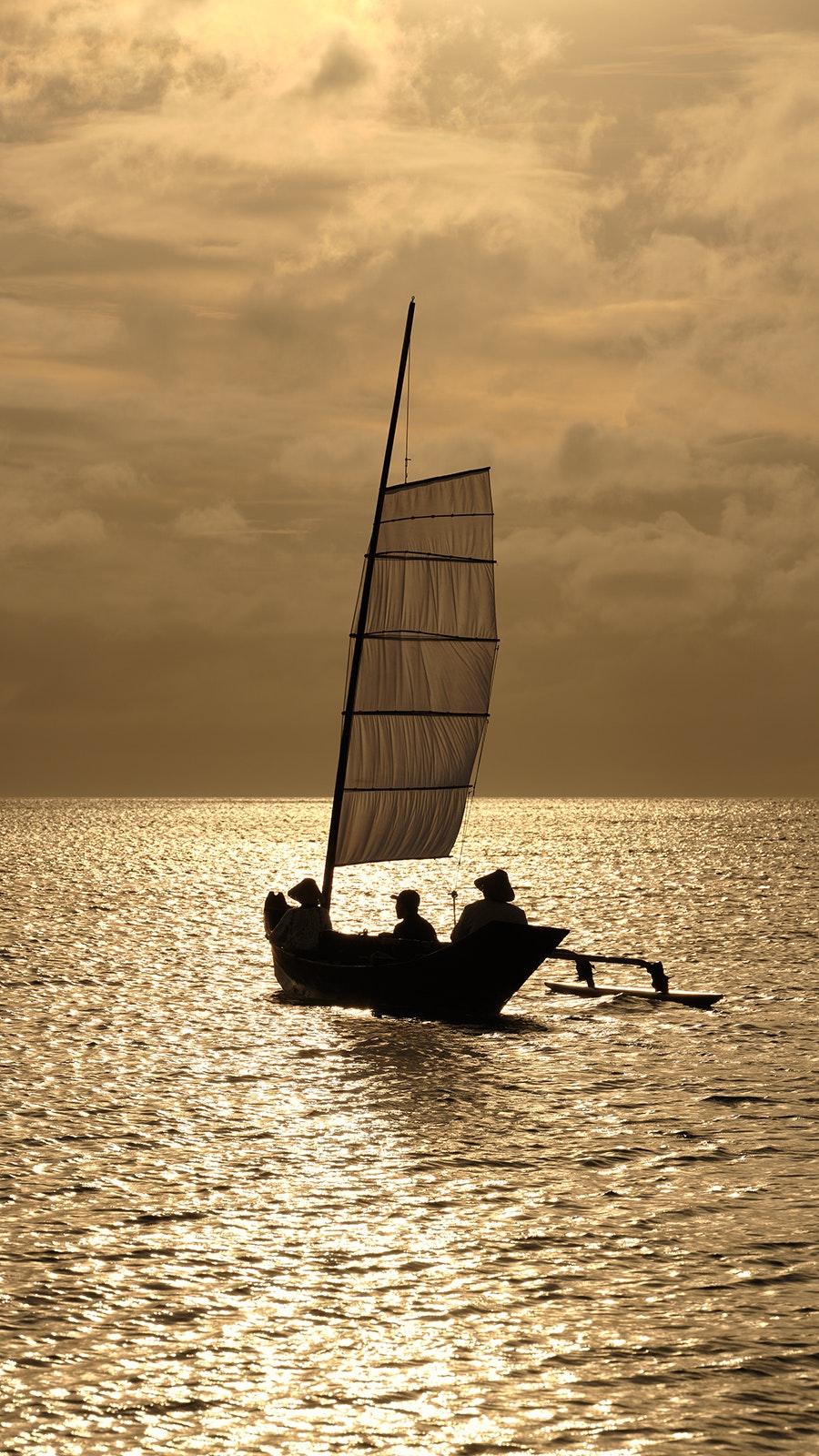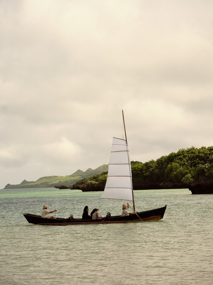 静かな波音に包まれてサバニはゆるやかに進みます。