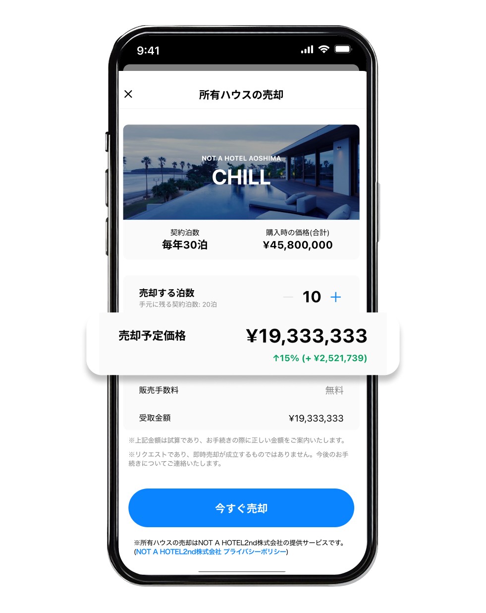 引き渡し3年以降は、アプリの「今すぐ売却」機能を通じて、売却が可能になります。