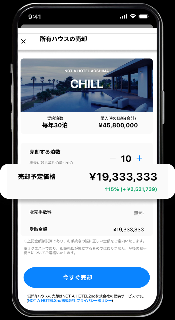 NOT A HOTEL 2ndが今すぐ買取をすることで、すぐにでも手放すことができます。所有する価値を大きく損なうことなく、その瞬間に流動化できます。