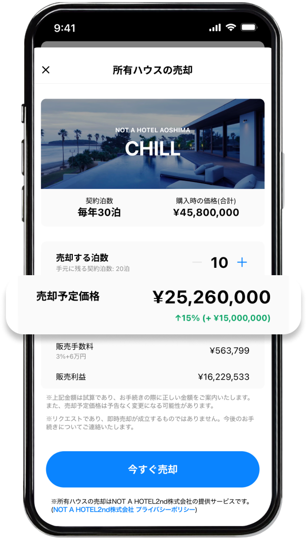 NOT A HOTELが今すぐ買取をすることで、すぐにでも手放すことができます。所有する価値を大きく損なうことなく、その瞬間に流動化できます。