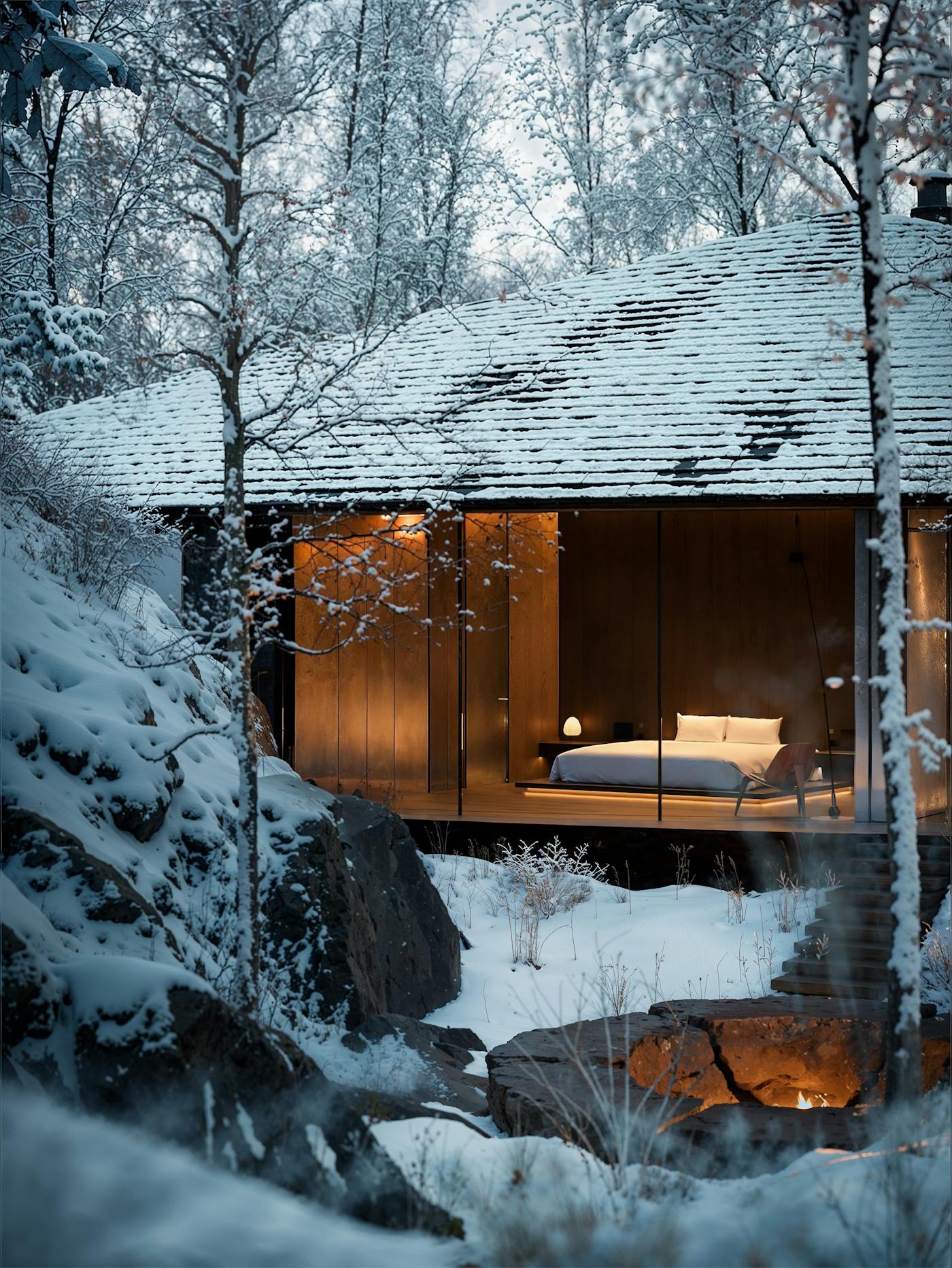NOT A HOTEL KITAKARUIZAWAの敷地の中でも、特に巨大な溶岩石が点在する場所に位置し、「岩の中で過ごしている」ような空間をお楽しみいただけます。大きな岩に囲まれた約30㎡のプライベート露天風呂のほか、岩風呂、サウナ、水風呂などを完備。屋内面積288㎡とKITAKARUIZAWAエリアの中で最大の広さを誇り、雄大な自然をひとり占めできる1棟だけのプライベートヴィラです。