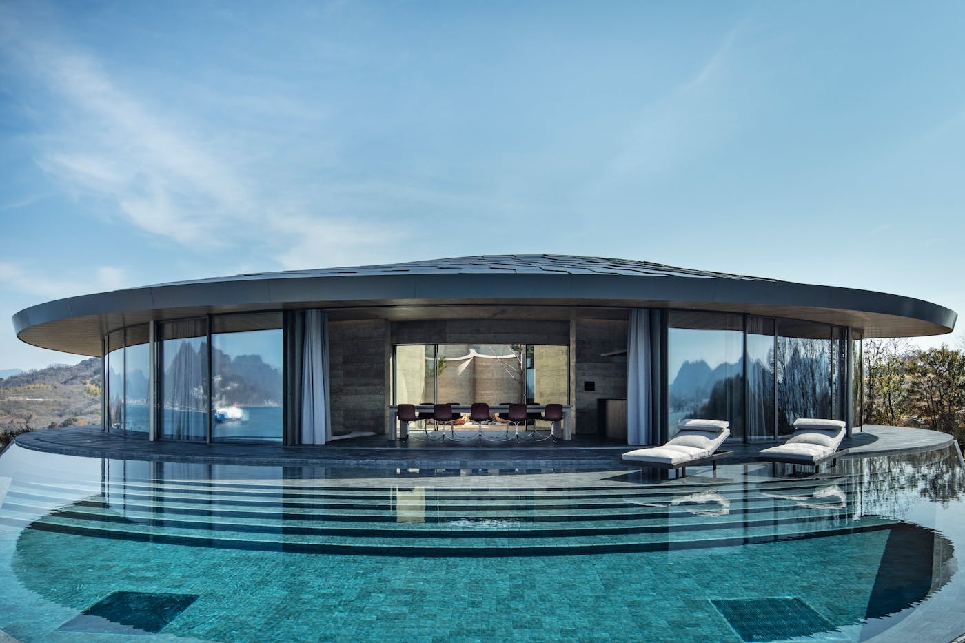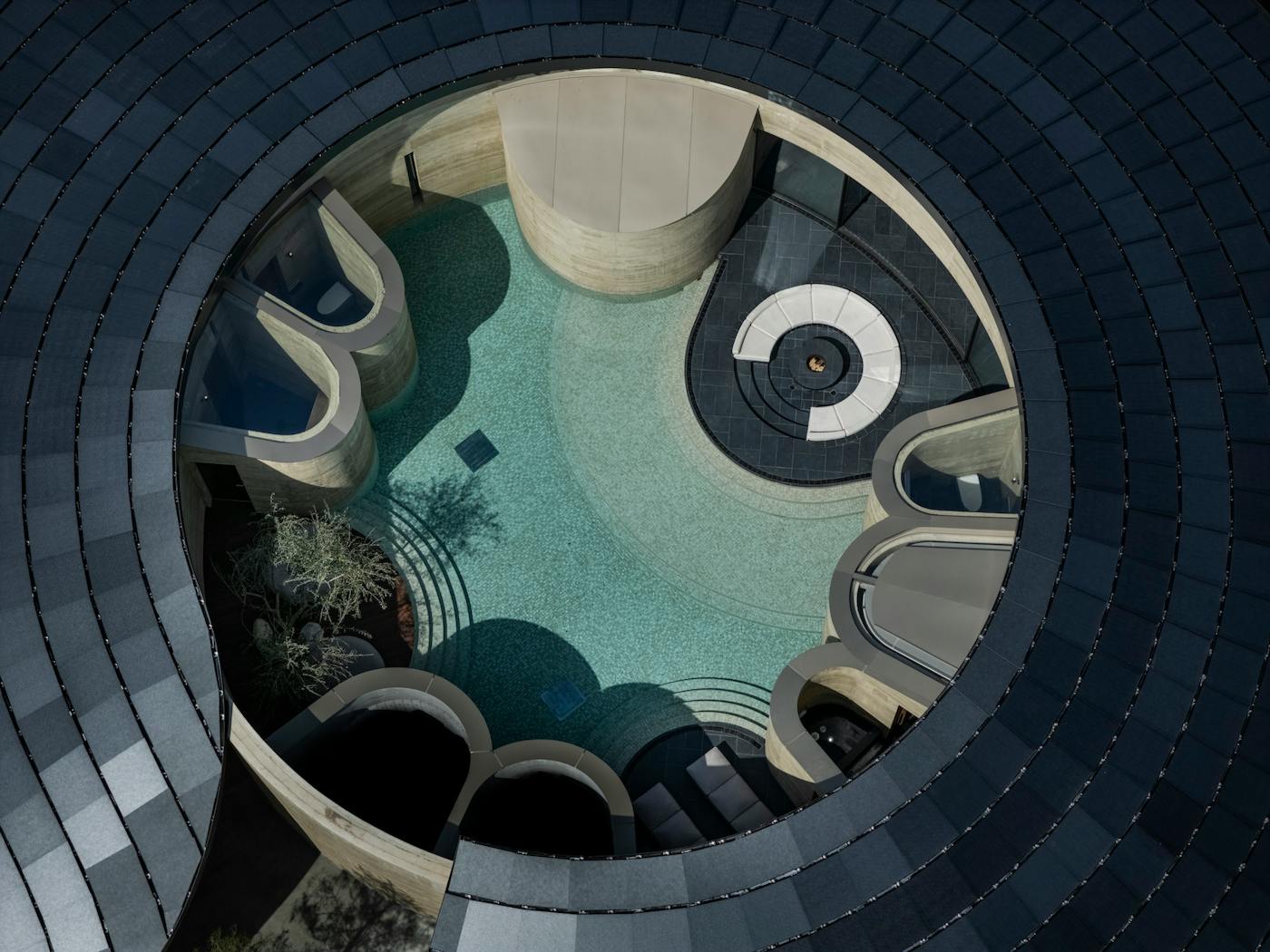 エリア内で最も高い丘の頂上に位置する「360」は、敷地に合わせたリング状の建築により、360度の眺めを実現。先端にはプール、中庭にはBBQや焚き火を楽しめるプライベート空間が広がります。天井から床までの窓からは自然光が差し込み、四季の移ろいを感じられます。
