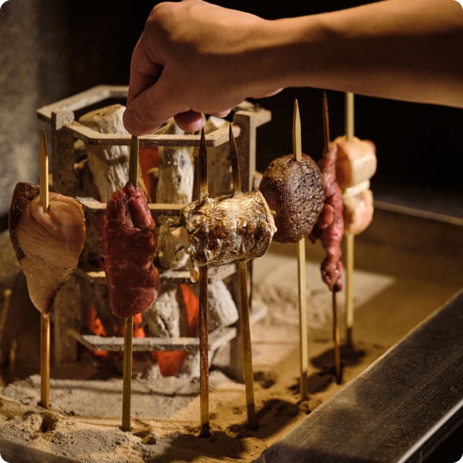 シンプルで自然な美味しさを追求した囲炉裏料理を提供。