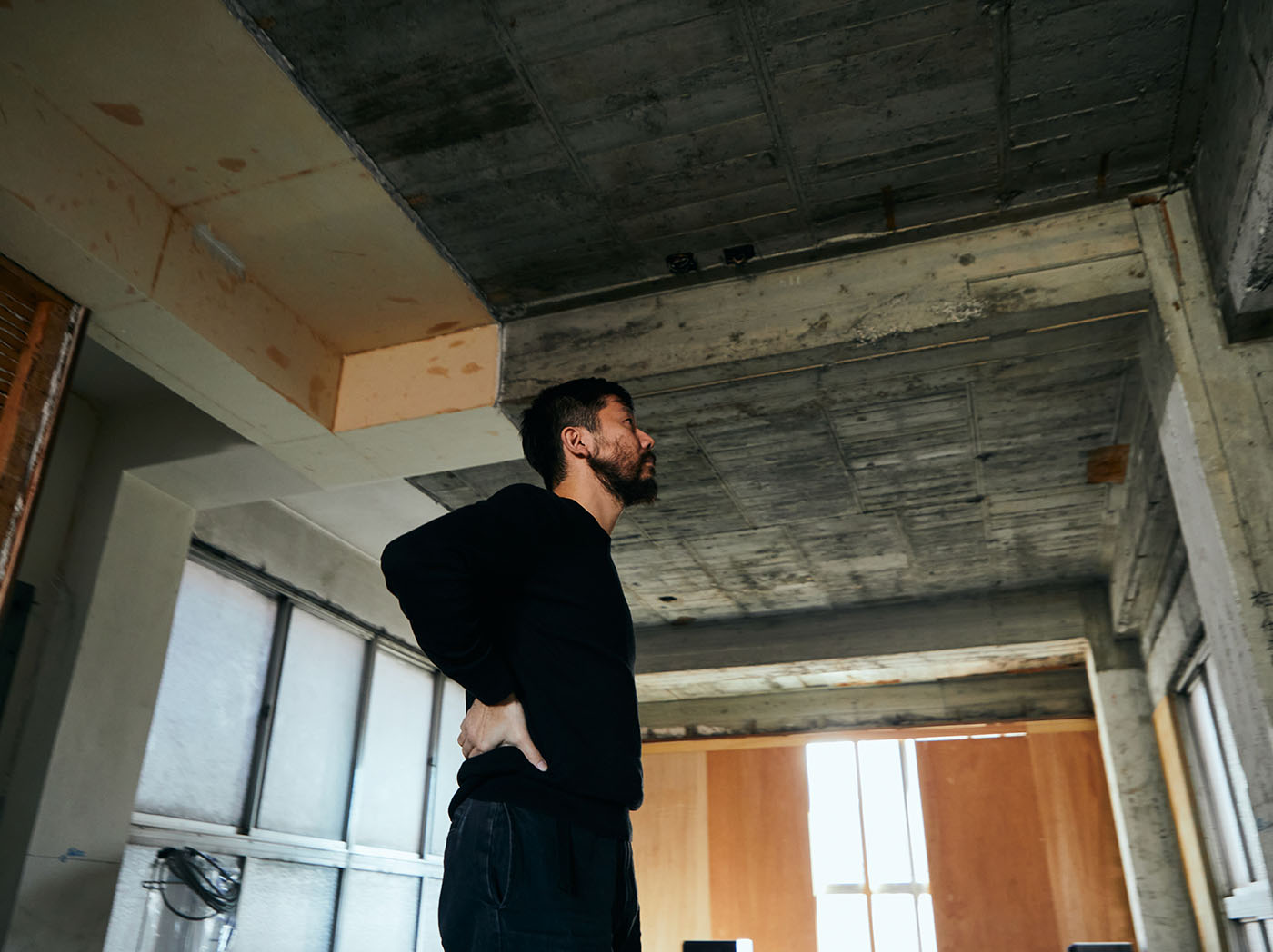 空間デザインを担ったのは、「CIBONE」や「Artek Tokyo Store」などの商業空間から「avex」や「Takram」といった企業のオフィスまで、さまざまに手がけてきたDAIKEI MILLSの中村圭佑。なかでも2020年から始めた「SKWAT」では、都市の遊休施設を一時的に占有し、様々な手法を用い一般へ解放する運動が大きな話題に。