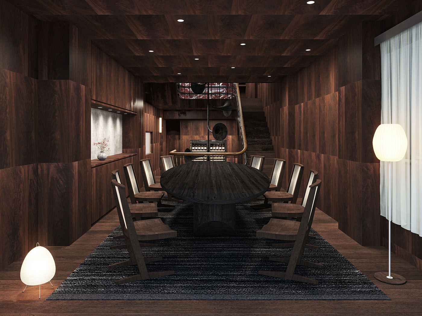浅草寺から徒歩数分の道路沿いに佇む一棟ビル。一見すると何の変哲もないこの古びた建物こそ、NOT A HOTELのオーナーが利用できるCLUB HOUSE「NOT A HOTEL ASAKUSA」にほかならない。扉を開けると眼前に広がるのは、外界と隔離された非日常の世界。3層吹き抜けの空間を螺旋階段と音楽がつなぐ。ここはオーベルジュで、多くの美食家を唸らせてきた中華の名店「桃仙閣 東京」を手がける林亮治シェフが1日1組限定で腕を振るう。
