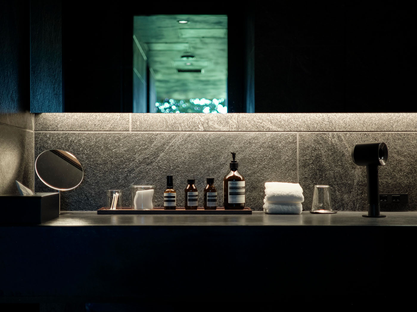 家電についても一つひとつ吟味し、ドライヤーはダイソン、電気ポットはバルミューダをセレクト。本来であればブランドをまとめた方がトーンが合い、調達も容易だが、それぞれのカテゴリーでNOT A HOTELとしてのベストを選んだ。結果としていくつか同じブランドのものが選ばれたが、そこには必然性がある。また、選ぶものの範囲が広いため、もの同士のバランスや相性も考慮した。