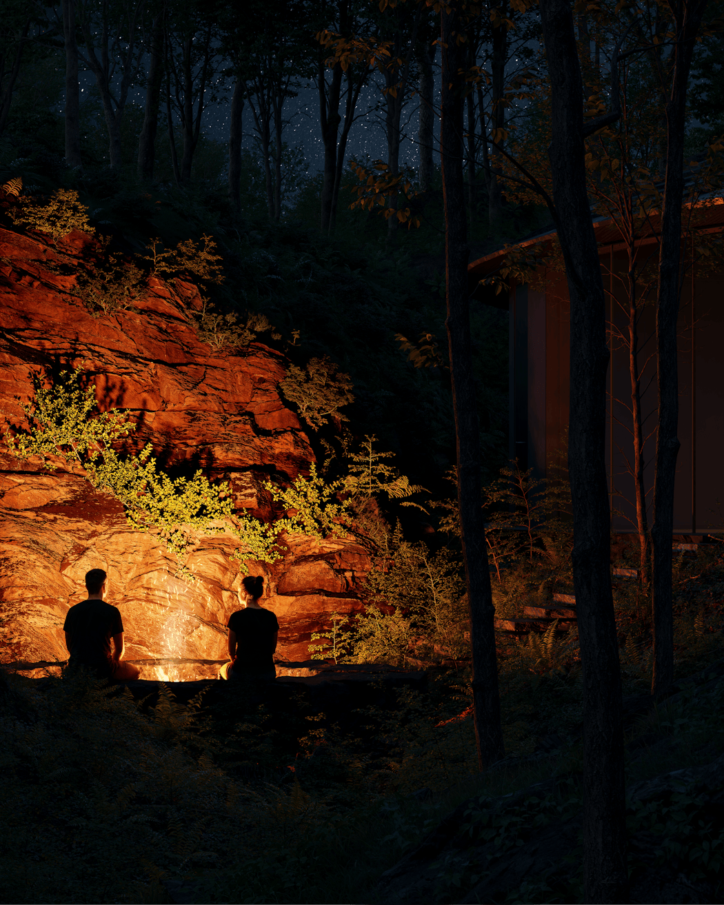 「改めてコンペティションを振り返ると、数多くの魅力的な提案の中で私たちのデザインが選ばれたのは、自然と調和し、その美しさを引き立てるという明快なコンセプトが、審査員のみなさんに届いたからだと思います。そして、その思いの熱量をそのままに、NOT A HOTELのメンバーが一緒になって走り抜いてくれて、今実現することに喜びと感謝の気持ちでいっぱいです。建築は滞在者がいてこそ完成するもの。土地と一体となった建築で、森の香りを深く吸い込み、風や鳥の音に耳を澄まし、素材の手触りを感じて、さまざまに自然との交流を重ねてほしいですね。みなさんがNATURE WITHINにどう反応し、何を体験し、滞在を通じてどのような感情の変化を起こすのか、今からとてもわくわくしています」(Hassan氏) UNFORMED DESIGNが大切にする設計哲学に基づいた土地性に寄り添う独創的なデザインと、それを具現化しながら、リアルな宿泊施設として落とし込んでいくNOT A HOTELの力が融合し、滞在者の価値ある体験と時間を醸成していく。